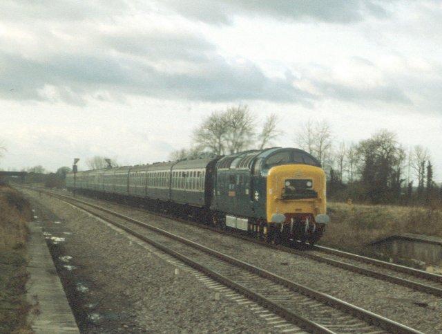 28/11/81:- 55022 "Royal Scots Grey" passes the site of Wantage Road station with the Deltic Venturer railtour.