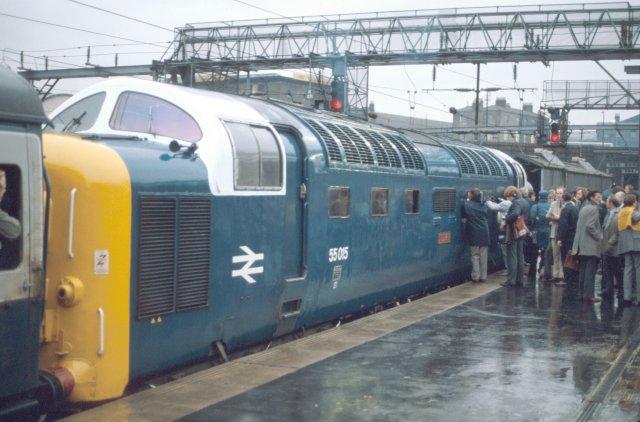 02/01/82:- 55015 "Tulyar" waiting to leave King's Cross with the "Deltic Scotsman Farewell" railtour.