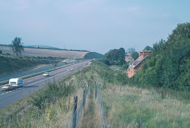 28/08/82:- Litchfield station and the A34 trunk road that made the railway redundant.