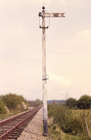 30/04/83:- Wooden, post and arm, GWR Fixed Distant signal on the Abingdon branch.