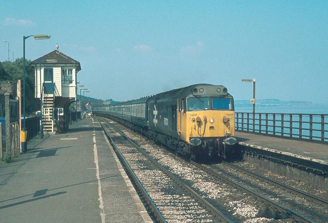 04/07/83:- 50033 "Glorious" passes Dawlish Signal Box with an evening westbound express.