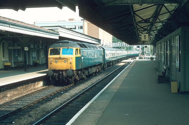 05/07/83:- 47018 arrives at Platform 2, Paignton station with a passenger train.