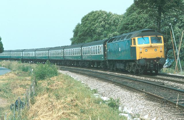 09/07/83:- An unidentfied Class 47 locomotive on a down passenger train between Powderham and Starcross.