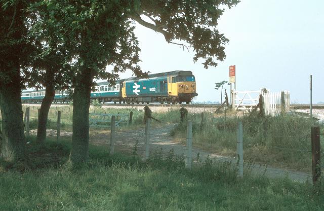 09/07/83:- 50033 "Glorious" heads a down express over a public occupation crossing near Powderham.