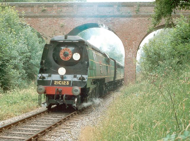 17/07/83:- 21C123 Blackmoor Vale climbs Holywell Bank under Three Arches Bridge.