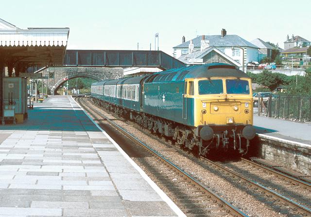 02/07/84:- 47380 heads a wetbound passenger train through Par station.