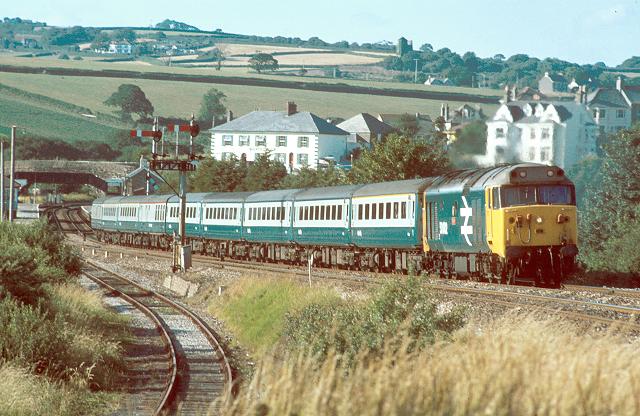 02/07/84:- 50002 "Superb" restarts it's train on the grade west of Par station.