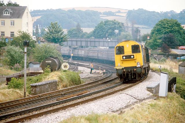 08/07/84:- The "Devonshire Dart" railtour rounds the sharp curve out of Totnes station and onto the start of the climb of Rattery Bank.