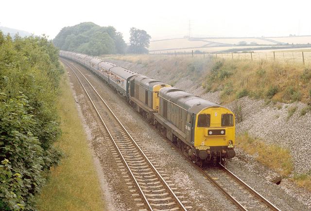 08/07/84:- 20184 & 20169 crawl up the last few yards of Hemerdon bank with the return Devonshire Dart railtour.