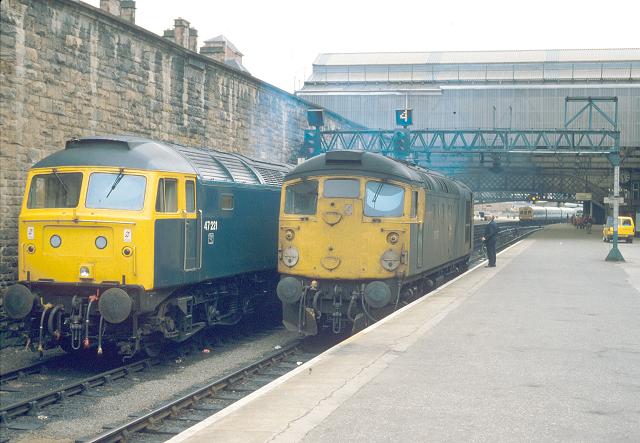 06/08/84:- 47211 and a grimy 26037 await the arrival of the northbound 'Clansman' at Perth station.