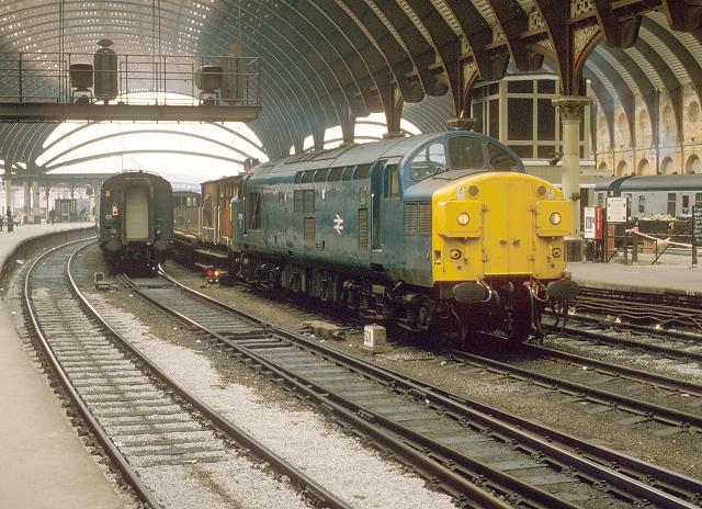 14/08/84:- 37104 running on the central roads through York station with an Engineer's train.