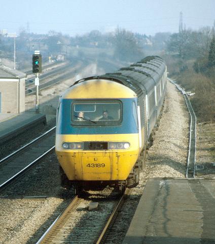 23/02/85:- HST power car 43189 heads west on the fast lines at Langley.