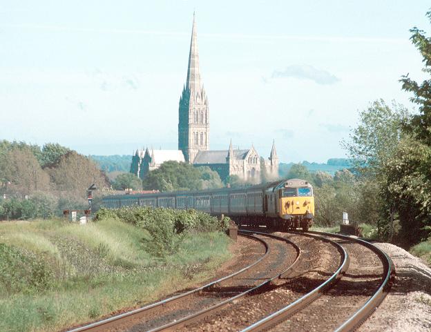 24/05/85:- 50050 "Fearless" restarts an Exeter St. David's service out of Salisbury towards Wilton.