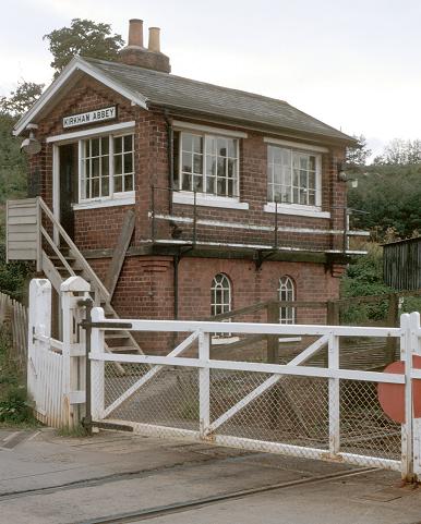 21/08/85:- Kirkham Abbey signal box on the York to Scarborough line.