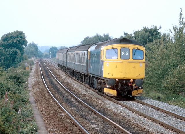 12/09/85:- 33015 on a South Wales bound train approaches Dilton Marsh platform.