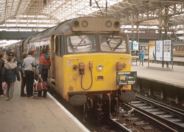 08/02/86:- 50012 "Benbow" at the buffer stops at Manchester Piccadilly.