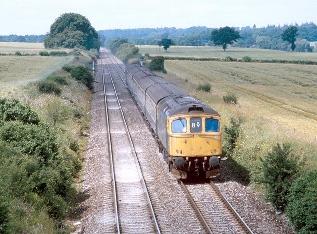 17/07/86:- 33003 passes East Grimstead with the 11.40 departure from Salisbury.