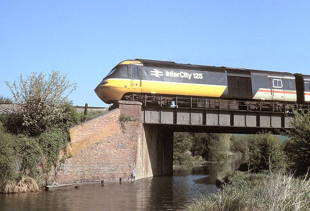 07/05/1987:- Power car 43127 crosses the Kennet and Avon canal heading westward near Hungerford.