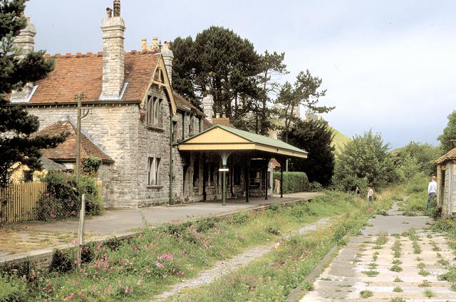 06/08/88:- Corfe Castle station taken from the Down platform.