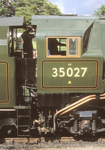 14/08/88:- Cab portrait of SR 4-6-2 35027 "Port Line" at Horsted Keynes.
