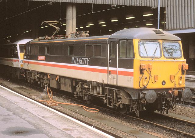 29/03/89:- 87028 "Lord President" and an unidentified Class 90 locomotive stabled at Euston.