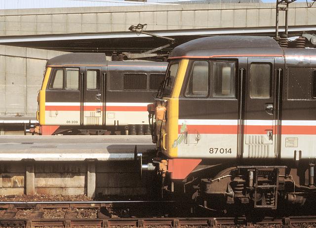 15/09/90:- Class 86 & 87 front-ends at Euston.