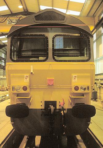 06/12/90:- Front-end view of 59102 inside the sheds at Whatley Quarry.