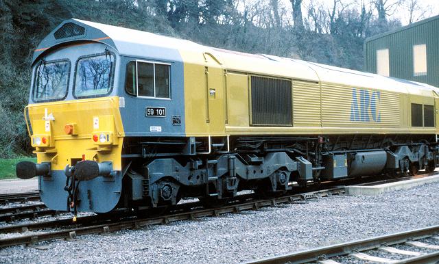 06/12/90:- 59101 stands in the yard at Whatley Quarry.