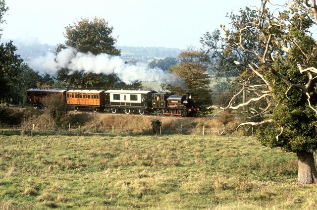 27/10/91:- No. 14 "Charwelton" climbs the lower part of Tenterden bank with the Vintage Train.