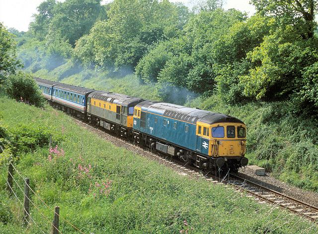 24/05/92:- 33102 & 002 captured shortly after leaving Buckhorn Weston Tunnel on time, with the 14.28 Exter - Waterloo service.