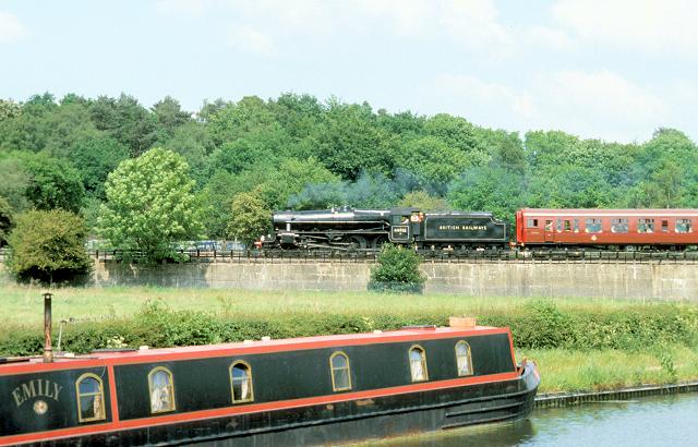25/05/92:- 44932 runs alongside the Grand Union Canal near Rickmansworth.