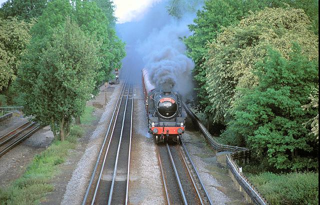 25/05/92:- 44932 making smoke as it heads the 17.40 service from Harrow near Amersham on the Hill.
