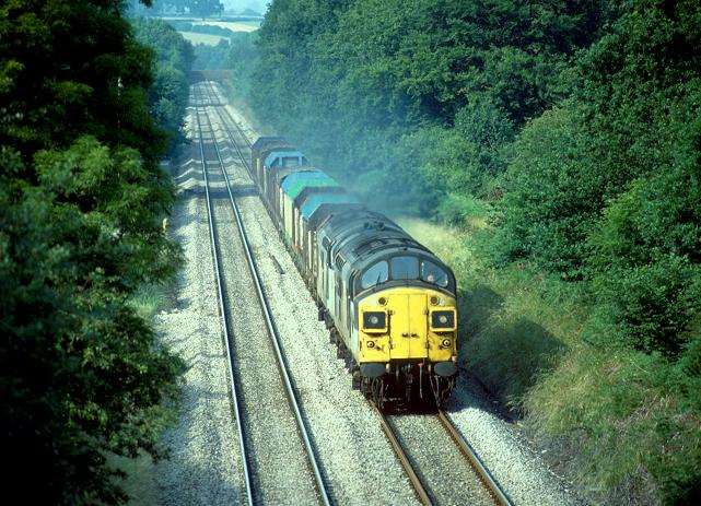26/06/92:- 37059 & 37074 head a southbound steel train past Penperlleni at 17.45.