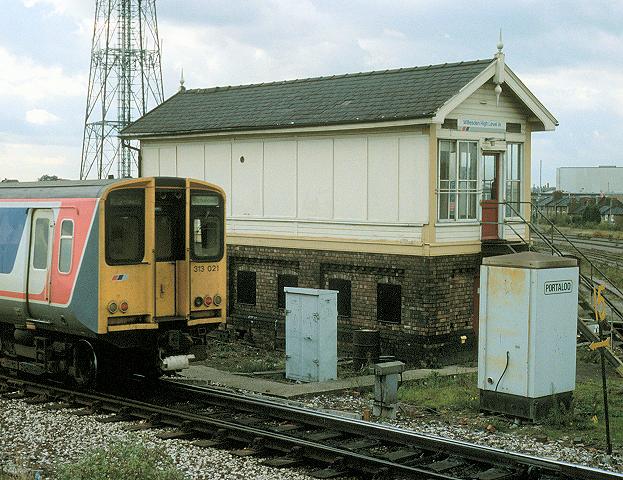 23/10/92:- 313021 passes Willesden High Level Signal Box.