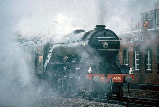 25/10/92:- 4472 makes a steamy departure from Princes Risborough passing the Signal Box.