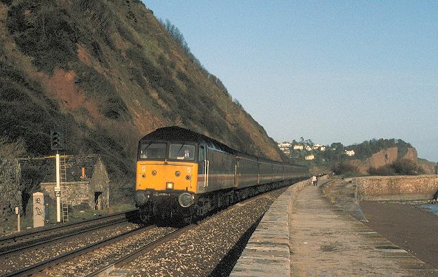 08/01//93:- 47812 heads a westbound express along the sea wall at Teignmouth at 13.57.
