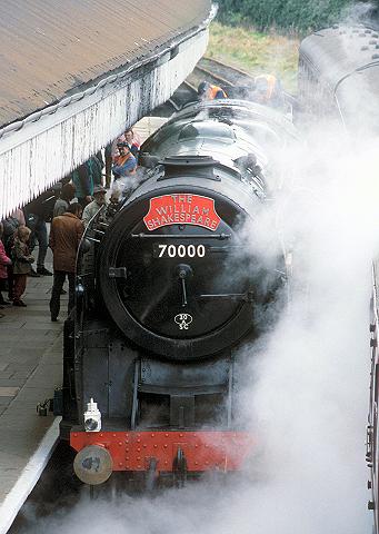 11/04/93:- 70000 stands in the platform at Stratford-upon-Avon having returned from turning on the triangle.