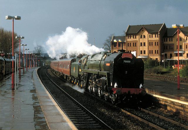 11/04/93:- 70000 rolls into Banbury soon after a refreshing shower of rain on it's return run to London.