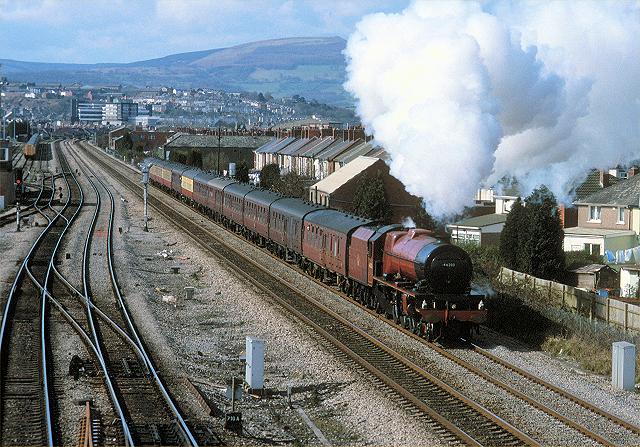 18/03/95:- 46203 "Princess Margaret Rose" passes East Usk Junction and yard with the Royal Bristolian railtour, running 10 minutes late at 13.30.
