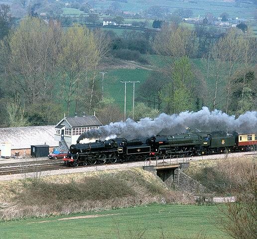 08/04/95:- 75014 and 70000 are 15 minutes early as they pass southbound through Pontrilas with the North & West Limited railtour.
