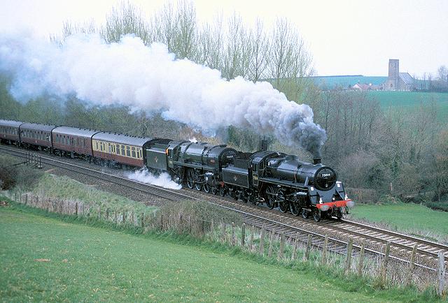 08/04/95:- 75014 and 70000 working hard as they climb Wellington bank, heading west.