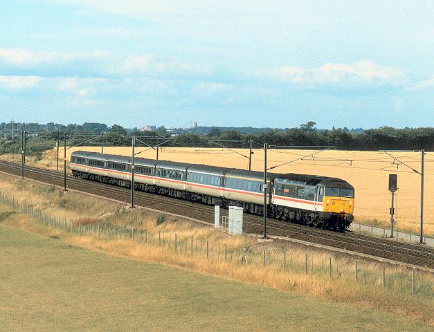 21/07/95:- 47831 "Bolton Wanderer" is held at signals with a southbound express just south of Colton Junction.