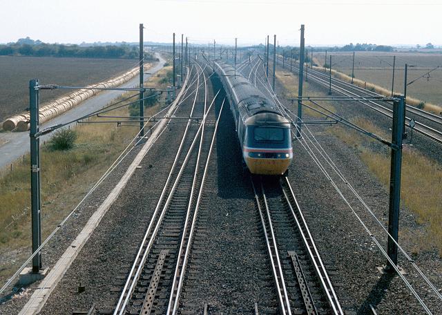 16/08/95:- An unidentified northbound HST on the 125 mph crossings at Colton Junction.