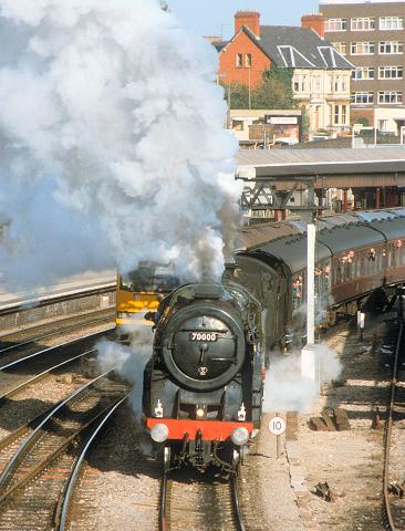 04/11/95:- 70000 and 7325 re-start the SVR Railtours Special from platform 1, Newport station alongside 60033 waiting on the centre road.