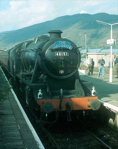 07/09/98:- Stanier 8F No. 48151 at Fort William with The Jacobite excursion train to Mallaig.