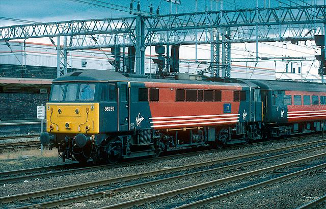 09/06/2001:- 86259 propels a Euston bound express south out of Platform 5, Crewe station.