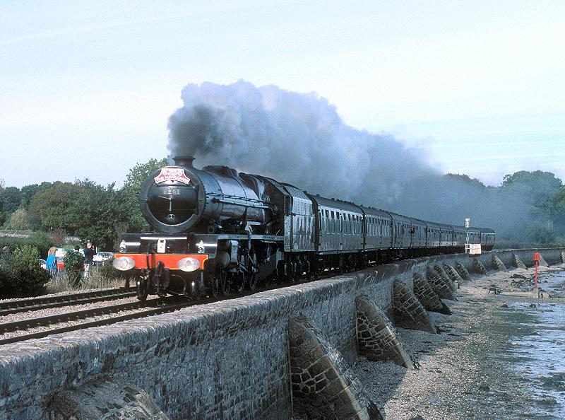 19/10/02:- 6201 approaches Starcross station at speed with the westbound Mayflower railtour.
