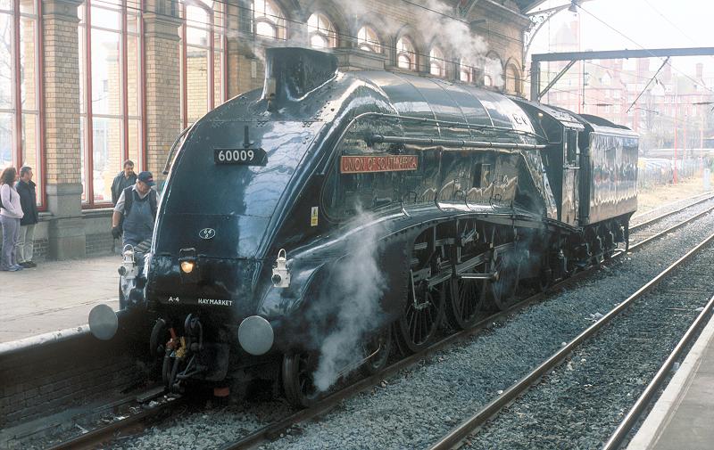 23/11/02:- 60009 is serviced in a side platform at Preston on the Shap Streaker railtour.