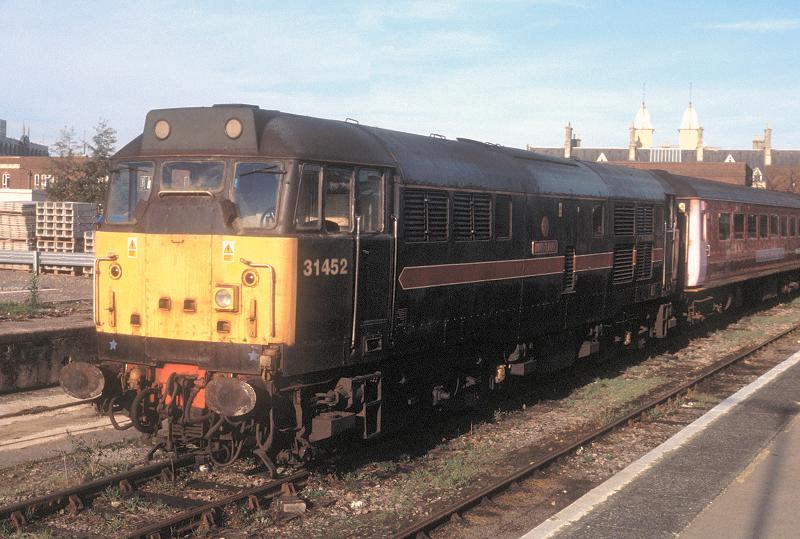 13/11/04:- 31452 stands in one of the sidings at Bristol Temple Meads station.