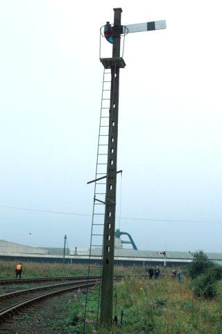 20/9/80:- Great Central lower quadrant signal at New Holland Town. Concrete post, wooden arm.